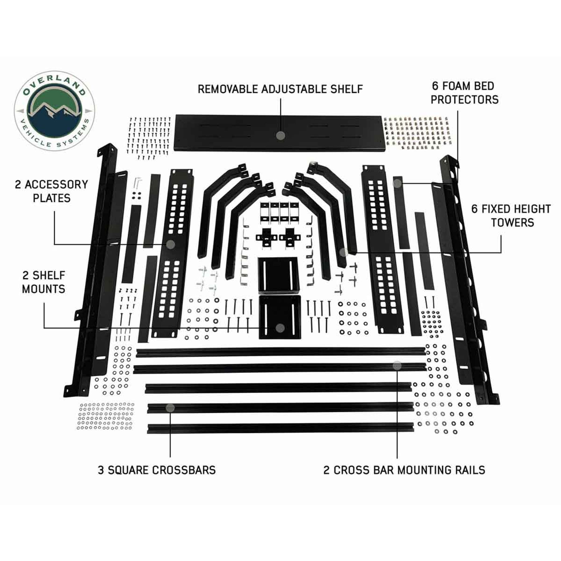 Overland Vehicle Systems Discovery Rack is a multipurpose cab height Truck Bed Rack that meets the needs of every Overlander. Perfect for your Roof Top Tent, 270 Awning, 270 LT Awning, Standard Pull Out Awning, Lighting, Recovery Ramps and Overland gear. Universal fit mid-size truck application designed to be a no-holes to drill direct bolt on Truck Bed Rack. Featuring square tubing that can be set up to accommodate many mounting brackets, t-slots, and other cargo management gear to take on the trail. The Overland Vehicle Systems Discovery Rack’s open Truck Bed Rack design has plenty of capacity to support about everything you want to put on it. Overland Vehicle Systems offers the best warranty with a Limited Lifetime structural warranty and five-year finish warranty. At Overland Vehicle Systems, we offer a variety of overlanding and camping gear to help you get the most out of your outdoor adventures. Our Mid Size Truck Short Bed Application is the perfect way to turn your truck into the ultimate overlanding rig. With a quick and easy installation, this rack gives you the ability to carry all the gear you need for a successful trip. Featuring a variety of mounting options, the Mid Size Truck Short Bed Application is perfect for carrying a roof top tent, awning, and all the other gear you need for a comfortable camping experience. Order yours today and start planning your next overlanding adventure!