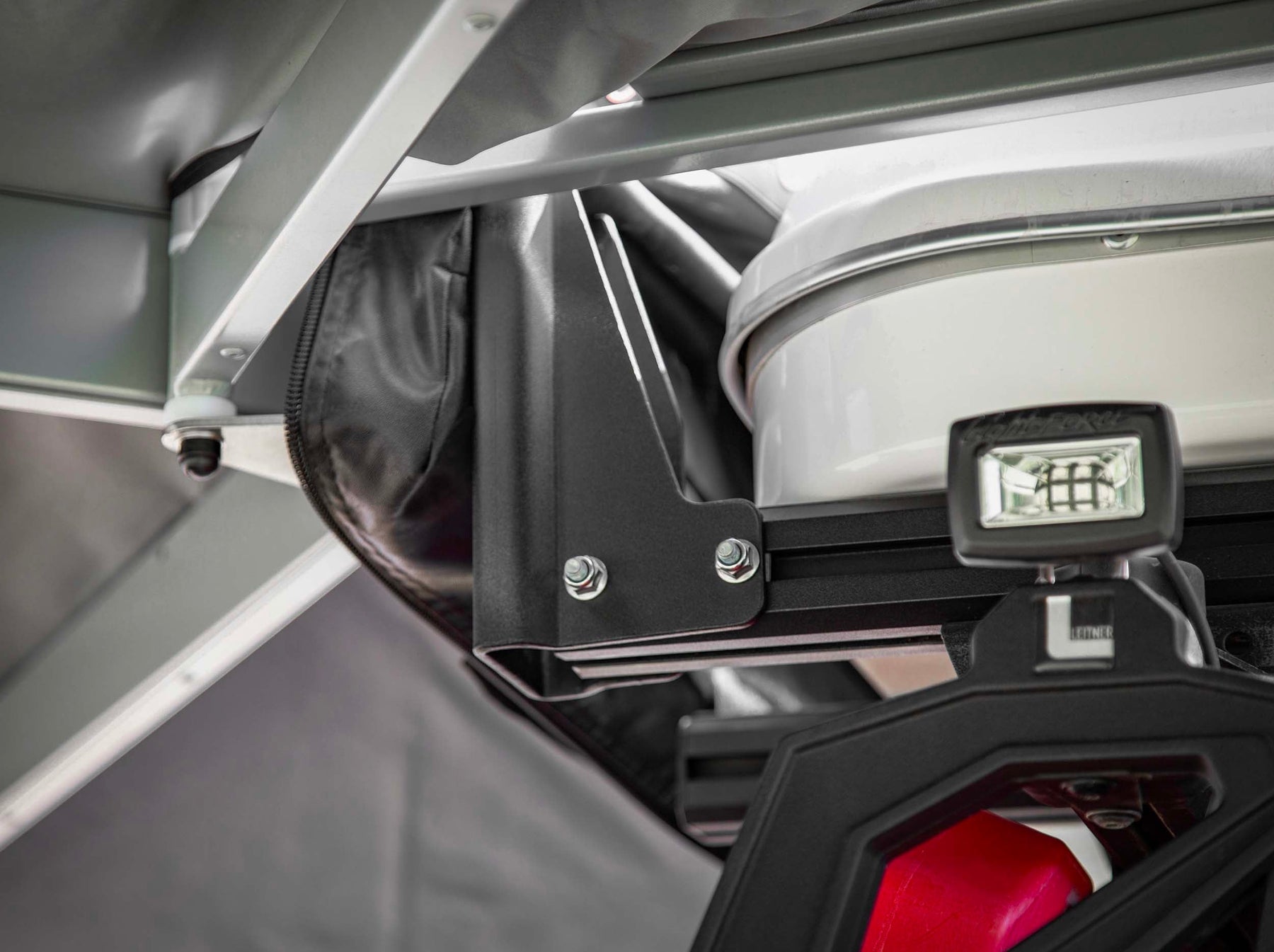 The HD Awning Bracket is engineered & manufactured in Southern California using the same dual stage automotive powder coat finish as the Leitner ACS Racks.